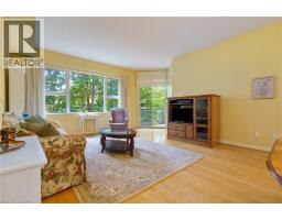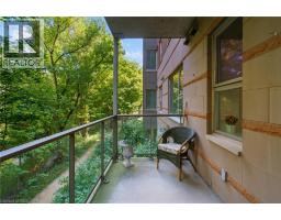 $723.98 MonthlyDiscover this magnificent condo apartment perfectly situated along the rushing Spencer Creek, where serene natural surroundings meet the convenience of downtown Dundas just steps away. Located on the coveted main floor, this residence combines ease of access with the elevated privacy of a balcony that overlooks lush, tree-lined greenspace—offering the feeling of a retreat while still close to shops, dining, and an abundance of amenities. Inside, the home features lofty 9’ ceilings, rich hardwood flooring, and a warm palette. The inviting open-concept living and dining area seamlessly connects to the private balcony, while pocket doors lead to a bright eat-in kitchen equipped with crisp white appliances. The spacious primary bedroom includes a 4-piece ensuite with a soaker tub and separate walk-in shower. A second bedroom, additional 3-piece bathroom, and an ample-sized laundry/utility/storage room add both comfort and functionality. This landmark building is celebrated for its innovative architecture, offering a truly unique condo experience. Residents enjoy an array of amenities, including a well-appointed party room, fitness room, and a convenient guest suite for overnight visitors. Designed for carefree living, this condo offers tranquil views, elegant surroundings, and a worry-free lifestyle in one of Dundas’ most coveted communities. (id:61594)