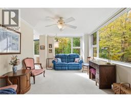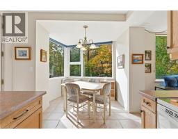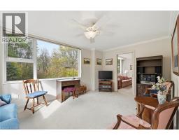 Spacious Corner Suite Overlooking Spencer Creek - 77 Governor’s Road, Dundas, Unit 207. Welcome to The Spencer Creek Village - built as one of Canada's most energy-efficient boutique condominiums, surrounded by nature and community. This 1,638 sq. ft. corner suite offers a thoughtful layout with a welcoming foyer and hall. The bright, open-concept formal living and dining areas are separated by pocket doors to the kitchen and den and framed by oversized picture windows with serene views of trees, gardens, and the creek below. Elegant crown moulding, a crystal chandelier, ceiling fan, polished floor tile, and custom blinds are just a few of the luxury upgrades. Enjoy a sunny, airy kitchen with a walk-out to the balcony, ceramic floors and backsplash, custom cabinetry, under-counter lighting, built-in desk, full-length pantries, double sink with garburator and instant hot water, and a large centre island open to the extended eating area filled with natural light for casual dining. The den, with its commanding views of the conservation area, is perfect for an office or TV room, while the spacious primary bedroom includes a large walk-in closet and full ensuite with a generous linen closet. A second bedroom, also with a walk-in closet, and an additional bathroom offer flexibility for guests or family. Additional features include two underground parking spaces, a private storage unit, in-suite laundry, and abundant closet space. The second-floor location allows access by elevator or stairs via the secure entry system. This well-maintained building offers beautiful landscaping, visitor parking, central air conditioning, a fitness room, sauna, guest suite, library, gathering lounge, and outdoor BBQ - all steps from nature trails and downtown Dundas conveniences. A rare opportunity to relocate without compromise - surrounded by comfort, quiet, and community. (id:61594)