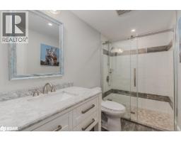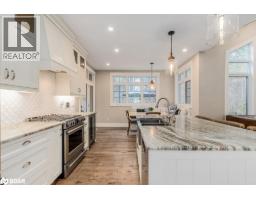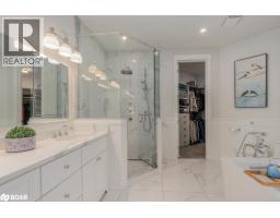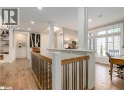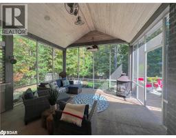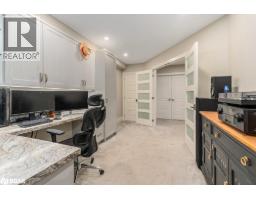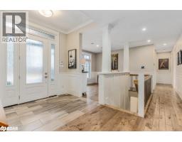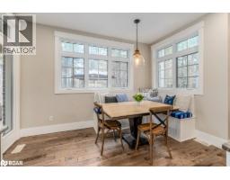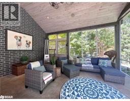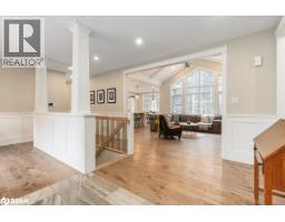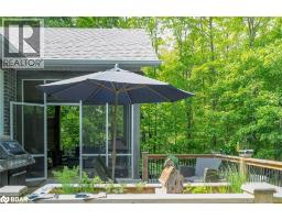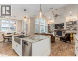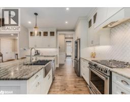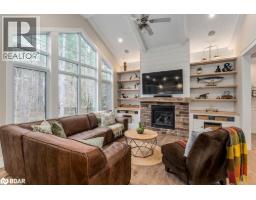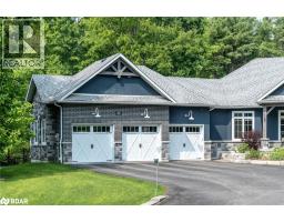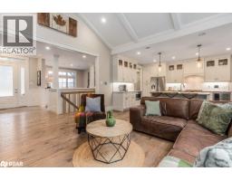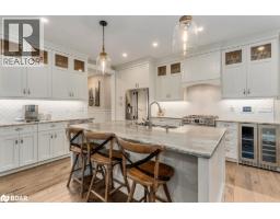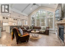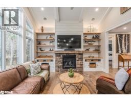 Nestled on a wooded lot in the sought-after community of Snow Valley, this custom bungalow offers over 3,600 square feet of finished living space designed for comfort, convenience, and entertaining. Thoughtful craftsmanship is evident throughout with hickory hardwood flooring, wainscoting, and nine-foot ceilings on the main level. The kitchen serves as the heart of the home, opening to a screened Muskoka room with vaulted ceilings and tranquil views of the private, tree-lined backyard. A large deck, fire pit, and gas BBQ hookup extend the living space outdoors. Inside, modern upgrades include a Sonos in-wall sound system, mounted iPad smart controls, and a stone gas fireplace. The primary suite is a true retreat with heated floors, free-standing tub, double quartz vanity, and a custom walk-in closet. Two additional bedrooms share a Jack and Jill bath. The fully finished lower level provides exceptional space for family or guests with two more bedrooms, a large recreation / game room, incredible dedicated office space, wet bar, and wine fridge. The triple car garage is equally impressive, featuring in-floor radiant heat, a drive-through bay, and a convenient dog wash station. Backing onto environmentally protected land, the property ensures privacy and a serene natural setting. The location offers immediate access to golf, ski hills, hiking and biking trails, and the Springwater Farmers Market, while Barrie is just minutes away for shopping, dining, and amenities. 77 Mennill Drive blends the best of refined living and an active outdoor lifestyle, making it a rare offering in one of Springwater's most desirable neighbourhoods. (id:61594)