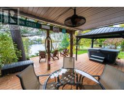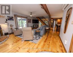 Nestled along the peaceful shores of Colonel By Lake, this enchanting 2-bedroom + den, 2-bathroom home blends rustic charm with modern elegance. Set on approximately 0.43 acres with 123 feet of waterfrontage, this property offers a serene retreat just minutes from town amenities-only an 8-minute drive away. Step inside and be greeted by the warmth of wide-plank pine floors, a cozy propane fireplace, and an open-concept kitchen designed for entertaining, featuring a large island and stunning water views through expansive windows. The natural light and panoramic views of the bay create an inviting, relaxed atmosphere throughout. Upstairs, the spacious primary suite spans the entire half-storey, offering a private sanctuary with a walk-in closet, ensuite bathroom, a generous sitting area, and sliding glass doors onto your private balcony- perfect for quiet mornings or unwinding after a long day. Outside, enjoy the tranquil waterfront lifestyle with plenty of space to relax, entertain, or launch a kayak from your shoreline. The attached double garage adds convenience, while the property's rustic-meets-modern design provides timeless appeal. With only 24 homes in this exclusive lakeside enclave, opportunities like this are rare. Whether you're a couple seeking a peaceful retreat or a small family looking for a place that feels worlds away yet close to everything - this Colonel By Lake gem is ready to welcome you home. (id:61594)