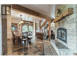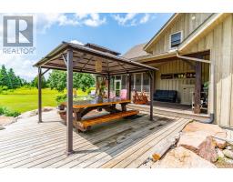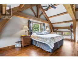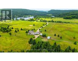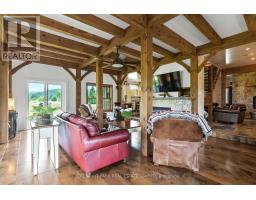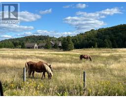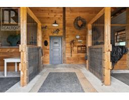 An extraordinary country estate set on 122 acres of rolling pasture, hardwood forest, and scenic trails. This timeless Discovery Dream Homes Timber Frame hybrid draws inspiration from classic farmhouse architecture and is finished with exceptional craftsmanship, reclaimed pine barn boards, slate tile, engineered alder and walnut floors, solid alder doors, and a dramatic 600 sq ft timber-framed great room with a stone fireplace. The 4-bedroom home is designed for comfort and connection, featuring a custom kitchen, handcrafted timber staircase, mahogany-accented upper level, and a screened-in timber porch. Step outside to the expansive outdoor entertaining terrace ideal for al fresco dining, evening gatherings, and taking in the sweeping countryside views. Equestrian-ready with 25+ acres of fenced pasture, horse paddocks, a 24x36 barn with two 10x20 stalls (with power and water), and a hay barn with covered storage. A 2-car garage is attached to the home, and a separate garage includes a workshop and office space perfect for creative pursuits or home-based business. A private trail network winds through managed forest, leading to a charming wildlife viewing cabin overlooking Grace Lake and adjoining crown land. With in-floor radiant and gas heating, an Amberwood front door, and inclusion in the Managed Forest Program, this property offers the ultimate in luxury, privacy, and rural sophistication. (id:61594)