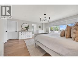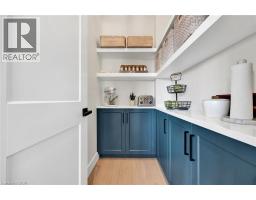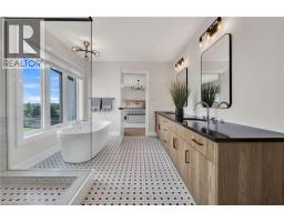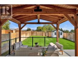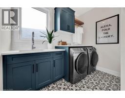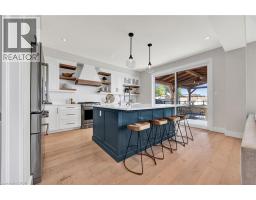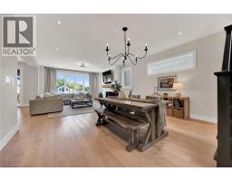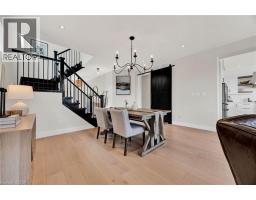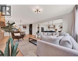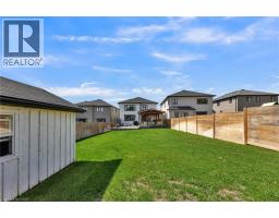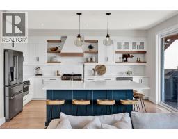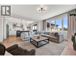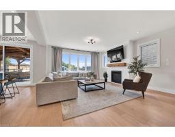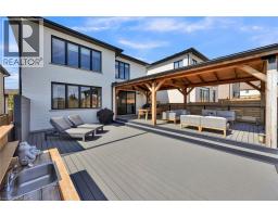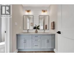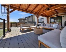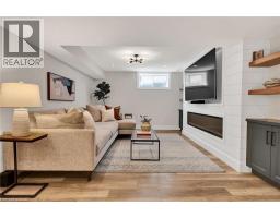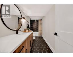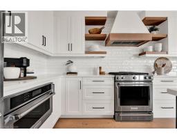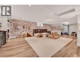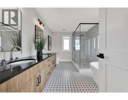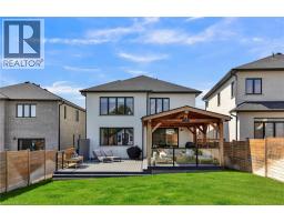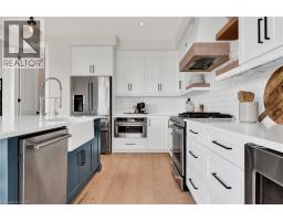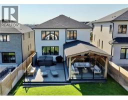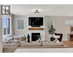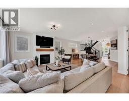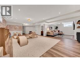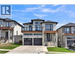 Architecturally bold and unmistakably modern, this beautifully executed residence in a prime Doon location delivers style, function, and space in equal measure. Clean rooflines, oversized windows, and a mix of stone, brick, and wood accents define the striking exterior, while inside, over 3,000 sq. ft. of finished living space has been curated with today’s modern family in mind. At the heart of the home, the custom kitchen pairs white shaker cabinetry with open wood shelving and a statement navy island. Quartz counters, a farmhouse sink, built-in appliances, and designer lighting create an inviting and practical workspace. The adjoining living area is bright and open, with a gas fireplace and expansive windows framing views of the extra-deep backyard. Upstairs, you’ll find four generous bedrooms and a laundry room with clever cabinetry and patterned tile for style and function. The primary suite features a walk-in closet and a well-appointed ensuite with a glass shower, freestanding tub, dual sinks, and bold monochromatic flooring. The fully finished basement is a major highlight—designed with a kids’ zone, a cozy media area, and a sleek bathroom, it’s ready for everything from playdates to movie nights. Outside, the covered deck with wood beams and glass railings creates a true extension of your living space, perfect for entertaining or relaxing. Set on a quiet street in highly desirable Doon, this home combines cutting-edge design with access to nature, schools, and amenities. Commuters will love the short, under-5-minute drive to Highway 401, making this property as convenient as it is visually impactful. (id:61594)