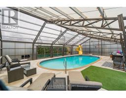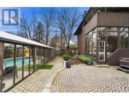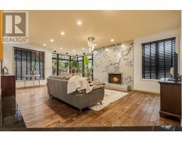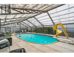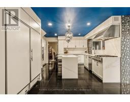 In the picturesque Dundas community of Pleasant Valley sits this extraordinary custom residence offering an elevated standard of living defined by impeccable craftsmanship and timeless design. Built by McConnell Homes, this distinguished all-brick two-storey spans over 4,500+ sqft above grade, plus 2,200+ sqft of exquisitely finished living space below. A grand double-door entry introduces an opulent Bisazza Italian stone foyer, setting the tone for the elegance that unfolds throughout. A sweeping staircase, adorned with luxurious Stark wool carpeting, anchors the home with architectural grace. The principal living spaces are thoughtfully designed for both grand entertaining and intimate gatherings, featuring wire-brushed hardwood floors and an effortless flow from formal living and dining areas into the heart of the home. The chef-inspired kitchen is a culinary showpiece, appointed with premium KitchenAid appliances, bespoke cabinetry, and generous prep space. The adjoining great room is equally captivating, highlighted by a striking imported Bisazza fireplace and seamless access to a private, resort-style backyard. Upstairs, natural light pours through a dramatic skylight, illuminating a spa-inspired ensuite featuring a jacuzzi tub, separate shower, dual walk-in closets, a private office, and a secluded terrace overlooking the gardens. Three additional bedrooms and two beautifully appointed bathrooms complete the upper level. The lower level is an entertainer's dream, with a richly finished family room, fireplace, granite flooring, wet bar, private theatre, kitchenette, and guest suite with ensuite bath. Walk-out to the multi-tiered interlock patio, covered in-ground concrete pool, and dedicated pool lounge - an outdoor retreat surrounded by mature landscaping, set on an oversized double lot. The property offers dual driveways from both Turnbull and Terrace, and a double garage with interior access-an exceptional offering of sophistication, comfort, and prestige. (id:61594)