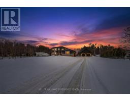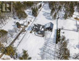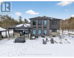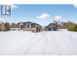 Welcome to the Homestead on the Riverbend. Set on 4 picturesque acres along the Nottawasaga River, this custom-built bungaloft estate offers a rare blend of luxury living and peaceful country lifestyle. With approximately 150 feet of river frontage and views of neighbouring horse paddocks, the property feels like a private retreat while still being just minutes from Barrie and Alliston. Thoughtfully designed with energy efficiency in mind, the home features owned solar panels with net metering that power the home while sending excess energy back to the grid, keeping utility costs remarkably low. Large picture windows capture natural light and passive solar warmth while framing beautiful views of the surrounding ravine and countryside. The property is also enrolled in a Forest Tax Incentive Program reducing Property Tax. With over 4,000 sq ft of finished living space, the home offers room for the whole family, including multi-generational living. The main floor primary suite features a spa-like ensuite, while two bedrooms upstairs and two additional bedrooms in the fully finished lower level each include walk-in closets. The chef's kitchen with large centre island and walk-in pantry opens to a covered porch overlooking the property, perfect for morning coffee or an evening soak in the hot tub. Outside, enjoy trails through the forest, peaceful moments along the river, and a charming bunkie tucked into the landscape. A separate 1,200 sq ft garage/workshop provides space for hobbies, equipment, or additional vehicles, with a 700 sq ft loft above. Serviced by Starlink internet and located just 12 minutes from Barrie or Alliston, this exceptional property offers the perfect balance of privacy, sustainability, and modern country living. (id:61594)