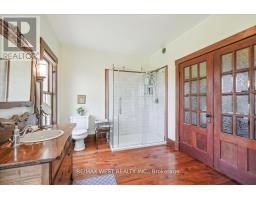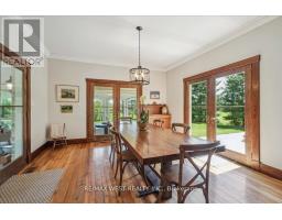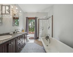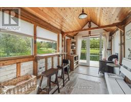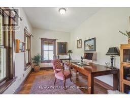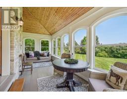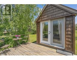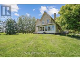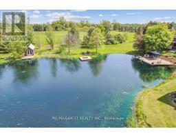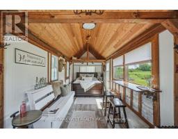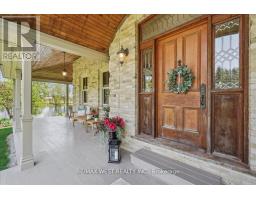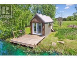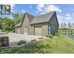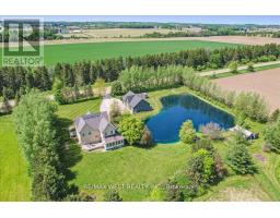 Elegant Home on 2 Acres with Large Secondary Home, Guest Cabin & Private Swimmable Pond! Rare opportunity to own a picturesque country estate that offers serenity, style, & income potential! Timeless elegance and modern comfort on this stunning 2-acre rural retreat, just minutes from the charming towns of Elora & Fergus. This one-of-a-kind reclaimed home, crafted with historic century brick, blends old-world character with contemporary luxuries! Step through a show-stopping solid wood front door into a home full of warmth and character. The spacious, light-filled interior features a gourmet kitchen with sleek concrete countertops and top-of-the-line Thermador appliances. Generous dining area opens to the outdoors through three sets of French doors for seamless indoor-outdoor living. Enjoy peaceful mornings in the sunroom with vaulted ceilings and panoramic views of nature. Antique pocket doors and stained glass windows add unique charm throughout. Convenient main-floor office offers serene views, while the mudroom/laundry area provides ample storage and convenience. Upstairs includes 4 large bedrooms each with beautiful outdoor vistas! The luxurious primary retreat comes with an antique slipper tub! A wide reclaimed wood staircase adds a dramatic architectural touch! The finished lower level is perfect for family fun, with a spacious rec room and additional bedroom ideal for guests or a games area. Step outside to your private paradise: perennial gardens, a serene pond (stocked with bass for fishing and skating in winter), a dock, and a covered deck with hot tub, all designed for year-round enjoyment! Additional Features: Charming wraparound deck with tranquil views; Beautiful detached secondary dwelling with 10-ft ceilings, 2 bedrooms, kitchen & loft space; Newly constructed, guest cabin with vaulted ceilings currently operating as a successful Airbnb business; Antique and reclaimed design elements throughout! Minutes to all amenities! (id:61594)