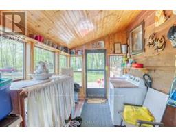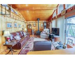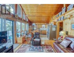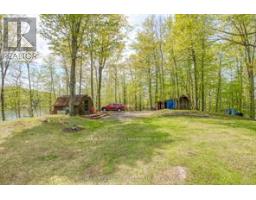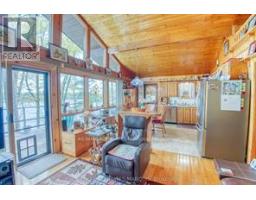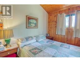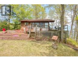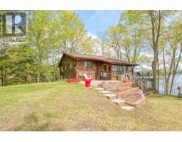 One of a kind Bob's Lake cottage sits nestled amongst the trees, hidden from the quiet waterfront just steps away. This 2 bedroom also has a sleep loft for the kid's accessed via a pull down loft ladder, a big kitchen area and room on the property to add a garage or trendy bunkie if needed (or convert one of the 2 sheds!). The cottage is a picture of rustic elegance and is a haven of tranquility where the gentle lull of the waves and the whispering breeze are your constant companions. There is lots of ways to update into a stunning year round cottage or home with just a few cozy finishes. Large deck overlooking the lake, invites you to relax and unwind. Stunning views of the waterfront from the wall of windows fill the rooms with an abundance of natural light and the soothing sounds of nature. Step outside, and you're greeted by a breathtaking panorama of the water. Dive into the cool, clear water for a refreshing swim, or simply sit back and soak in the beauty of your surroundings of the full lake view or the quiet bay area. Over 1.6 acres of treed privacy add to your enjoyment year round. As the sun rises, the waterfront transforms into a spectacle of colors, reflecting off the water's surface. It's the perfect backdrop for a morning of lake adventures, of relaxation or a night of stargazing. This beautiful waterfront cottage is more than just a place to stay. It's a place to experience, to live, and to create memories that will last a lifetime. (id:61594)