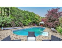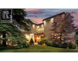 Sitting on a fantastic 1.01 acres in prestigious Woodland Acres, this custom-built estate offers ultimate privacy, luxury finishes, and breathtaking views. This is a one-of-a-kind retreat offering unmatched comfort and natural beauty. The landscaped front grounds feature towering mature trees and lush perennial gardens with abundant privacy. In the rear, a true backyard oasis awaits with an inground pool, large gazebo, swing set, fantastic table space, and a fully equipped cabana with granite countertops, stainless steel fridge, smooth-top stove, two sinks, and a 3-piece bath with separate shower area. Multi-level stone patios, staggered gardens, and expansive lawns make this an entertainers dream. Inside, a grand 2-storey foyer with skylights and marble floors leads to elegant principal rooms, including a family room with a floor-to-ceiling fireplace and balcony walk-out, a living room with medallion ceiling and window bench, and a sunlit family room. The gourmet kitchen boasts Blue Pearl granite floors/counters, Sub-Zero and Miele appliances, a large island, and built-in desk, with a breakfast area that walks out to the rear patio. Upstairs, the primary suite features hardwood floors, a sitting area with balcony access, wood-burning fireplace, and a spa-like ensuite with Jacuzzi, His & Hers vanities, glass shower, and cathedral windows. The second bedroom has its own ensuite with glorious views of the rear grounds. Bedrooms three and four share an architecturally eye-catching bathroom, including a 5-pc marble bath with sloped glass roof. The second-floor laundry room adds convenience. The walk-out lower level offers a rec room with fireplace, steam sauna, 2-pc bath, and plenty of storage. Additional highlights include geothermal heating, European multi-lock windows, three fireplaces, French doors, pot lights, skylights, and multiple balconies. Walk to top-ranked St. Theresa CHS and drive to SAC, SAS, HTS, Lauremont, CDS & Vilanova. (id:61594)