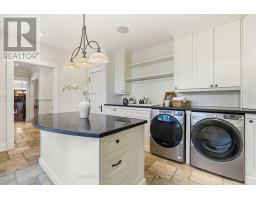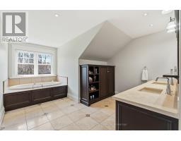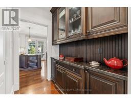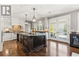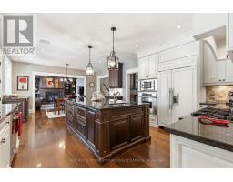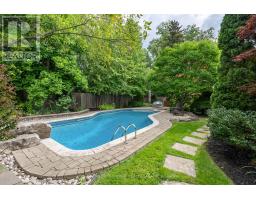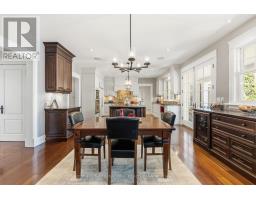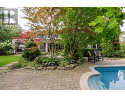 Elegant Cape Cod-inspired masterpiece set on a quiet cul-de-sac in prestigious South West Oakville. Ideally situated just steps from Lake Ontario and Appleby College, this residence offers over 6,100 sq. ft. of sophisticated living space featuring 4+1 bedrooms and 6 bathrooms. The grand two-story center-hall entrance is accented by rich Brazilian hardwood floors. The expansive chef's kitchen is complete with a large island, 6-burner Wolf stove-top, a sub zero fridge and sub-zero fridge/freezer drawers in the island. Large double doors, leading to the manicured backyard, flood the kitchen and breakfast nook with natural light. Designed for seamless entertaining, the main level features a formal dining room serviced by a butler's pantry and an inviting living room anchored by a cozy fireplace. Retreat to the serene Muskoka Room, boasting a wood-burning fireplace and tranquil views of the resort-style backyard. The main floor is completed by a side entrance, a functional laundry/craft room and a 2-piece powder room. This level has direct access to the 2 car garage with 2 EV charging stations. The upper level hosts a luxurious primary retreat with dual walk-in closets and a spa-inspired ensuite. Three additional generous bedrooms each feature private ensuites and walk-in closets. You won't want to miss the large bedroom over the garage that makes for the perfect teen retreat. The lower level is an entertainer's dream, offering a large recreation room with a pool table, a full gym, a guest suite, and a cedar-lined wine cellar. State-of-the-art mechanicals include two hot water tanks, 200 amp power for the home and a sump pump. The professionally landscaped grounds feature 14 zone irrigation system, an inground pool and multiple lounging areas, creating an outdoor oasis. The house is wired with a professional Sonos sound system. Ideally located near top-ranked schools and parks, this turnkey home offers an unparalleled lifestyle in Oakville's most coveted pocket. (id:61594)