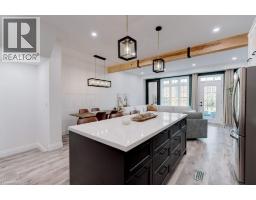 This stunning premium freehold townhome, ideally located in the heart of Waterdown, offers the perfect blend of style, comfort and convenience. Flooded with natural light thanks to its coveted southern exposure, the home radiates warmth and brightness throughout, enhanced by a striking central skylight that illuminates the upper level. Thoughtfully redesigned and fully renovated with permits in 2022, this move-in ready gem features a custom open-concept layout that effortlessly connects indoor and outdoor living spaces. Perfect for both families and entertaining, every detail has been carefully curated to deliver high-end finishes and peace of mind. The custom kitchen, completed in 2023, anchors the main floor with elegance and function, complemented by a handcrafted hickory-cladded beam and beautifully designed custom staircase and railings. Custom California Closets have been installed in all bedrooms as well as the upper-level laundry area, maximizing organization and storage. Additional upgrades include a new roof installed in 2023 with a 40-year warranty, new carpet, flooring, paint, trim, and baseboards, along with Roxul Safe ’n’ Sound insulation added to the main floor ceiling, interior, and party walls for added comfort and quiet. Ducts and furnace were professionally cleaned in 2023. Outside, the home continues to impress with professionally landscaped front and rear yards featuring low-maintenance turf grass, offering lush, year-round greenery without the hassle. Close to all amenities, such as schools, YMCA, grocery stores, restaurants, parks, trails and downtown! Conveniently located within minutes to Aldershot GO Station, QEW, 403, 407 and Hwy 6. This beautifully updated, turnkey residence is a rare find in one of Waterdown’s most desirable neighbourhoods—don’t miss your chance to make it yours. Don’t be TOO LATE*REG TM. RSA. (id:61594)