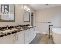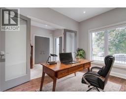 Custom built in 2018, this Edwardian-inspired residence blends timeless character with modern sophistication. Situated on a 42 x 100 ft property with striking curb appeal and a large covered verandah in Hamilton’s sought-after Delta West neighbourhood, it’s just one block from Gage Park and steps to the scenic Escarpment Rail Trail. Offering 2,591 sq. ft. of above-grade living space, the home impresses with a 9-foot ceiling and a bright, open-concept design ideal for family living and entertaining. The chef’s kitchen features granite counters, a centre island, and brand-new stainless-steel appliances, opening seamlessly to the family room with a gas fireplace. A private main-floor office overlooks the charming tree-lined street, while a powder room and convenient laundry with inside garage entry add everyday functionality. Upstairs, four spacious bedrooms include a stunning primary suite with vaulted ceilings, a walk-in closet, and a spa-like 5-piece ensuite with a soaker tub and glass shower. Step out onto the private balcony for serene views of the Niagara Escarpment. A remote-controlled skylight fills the upper level with natural light and promotes refreshing airflow throughout the home. The lower level offers 9-foot ceilings, a separate entrance, and roughed-in plumbing—ready to be transformed into a future income suite, recreation area, or multi-generational living space. Outside, enjoy a fully fenced backyard with a large entertaining deck, gas BBQ hookup, and parking for five vehicles including an oversized attached garage. Perfectly positioned in one of Hamilton’s most vibrant and walkable areas, this exceptional home captures the best of Delta West living—steps to parks, trails, and Hamilton’s emerging dining and cultural scene. Basement Notes: The addition of a third steel horizontal support beam eliminates the need for support posts so the entire basement area is unencumbered. There is a backflow preventer and a recirculating hot water feature. (id:61594)