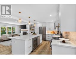 Stunning, Light-Filled Home on a Quiet Cul-de-Sac in Quaint Tottenham. Welcome to the perfect blend of modern living and small-town charm. Nestled at the end of a mature, tree-lined cul-de-sac, this beautifully updated home offers spacious, open-concept living on an exceptional lot.The newly redesigned front façade features an oversized porch with pot lights an inviting extension of your living space. Inside, natural light pours into the bright living room, complete with a custom media wall, built-in shelving, and a cozy gas fireplace.The show-stopping kitchen is a dream for any home chef, boasting a large island, premium appliances, quartz countertops, marble backsplash, pot drawers, a built-in beverage fridge, pendant lighting, and abundant storage. Step out from the kitchen onto a 12 x 24 wraparound deck ideal for outdoor dining and entertaining, with easy access to the garage. The backyard features new sod, partial fencing, and gates. Upstairs, the serene primary suite offers built-in closets and a rare full ensuite with a sliding barn door, double vanity, curbless shower, and added storage. The finished basement includes a 3-piece bathroom, a flexible bedroom/guest space, and a cozy rec room perfect for movie nights or visiting family. Notable Upgrades: New windows, patio door, garage door, furnace, A/C, flooring, flat ceilings, interior doors, and hardware no detail has been overlooked. This is turnkey luxury living with thoughtful design throughout. Come see it for yourself! Walking distance to town with shops and restaurants, close to schools and a short drive to highways, making Toronto, Caledon, Brampton and Mississauga easily accessible. (id:61594)