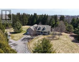 Step into this exceptional estate and experience refined country living at its absolute finest. Welcomed by a grand foyer with engineered hardwood flooring and an impressive open-concept design, elevated by soaring cathedral ceilings that create a bright and airy ambiance throughout. The main living space is anchored by a breathtaking floor-to-ceiling stone fireplace, serving as a striking focal point, while expansive double doors reveal picturesque views of 10 acres of pure serenity -At the heart of the home lies a chef-inspired kitchen, thoughtfully designed for both everyday living. Featuring quartz countertops with a seamless backsplash, custom cabinetry, stainless-steel appliances, and an impressive centre island, this space flows seamlessly to a walkout composite deck-perfect for extending your living space outdoors. The main level offers functionality with convenient laundry and four generously sized bedrooms. The primary suite is a true private retreat, complete with a luxurious five-piece ensuite featuring an oversized whirlpool tub! The finished lower level expands your living space with two spacious recreational rooms and an additional bedroom, enjoy the walkout providing direct access to the backyard. Outdoors, discover your own private oasis. Beautifully landscaped with an 8-foot deep chlorine pool, interlock lounge area with a fire pit, and a tranquil pond with sounds of flowing water.Entertain in the cabana-style pool bar, complete with a wet bar, shed. Enjoy peaceful walks through your private 10 acres of mature trees. With an elongated driveway with parking for up to 15-20 vehicles, and a versatile four-car garage-perfectly suited for a workshop, studio, or additional storage, located minutes from Hockley Valley Resort, offering year-round activities -skiing and tubing, -close to Headwaters Health Care Centre.This extraordinary property offers the perfect balance of luxury, privacy, and convenience! (id:61594)