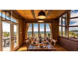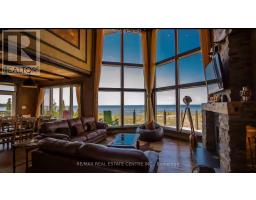 Wake up to breathtaking, panoramic views of Lake Huron on 1.43 acres - where the sound of the water, the surrounding nature, and the serenity of Tobermory come together in one extraordinary property. This 5-bedroom, 4-bathroom home blends peaceful living with affordable luxury, offering a retreat that feels worlds away, while still being fully turn-key and move-in ready. Three of the bedrooms feature walkouts to the wrap-around deck overlooking the water and private dock. The primary suite is a true sanctuary, complete with a two-way fireplace, walkout to the deck and hot tub, a spacious walk-in closet, and a spa-inspired en-suite showcasing a striking battered silver soaker tub. The main level living room mirrors this sense of grandeur with cathedral ceilings, a dramatic wall of windows, and the second side of the two-way fireplace. The hardwood-finished kitchen flows seamlessly to the deck and BBQ area, making indoor-outdoor living effortless. The lower level adds even more versatility with an additional bedroom, entertainment space, and a walkout leading directly to the dock and garden. Outside, multiple parking areas and a detached 2-car garage provide convenience, all surrounded by nature and the calming soundtrack of the shoreline. This is more than a home - it's a lifestyle defined by peace, views, and the beauty of Lake Huron. (id:61594)