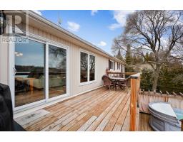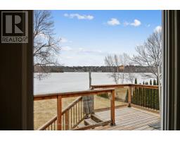 Set along the shores of Rice Lake, this waterfront property offers a thoughtful blend of comfort, functionality, and effortless connection to the outdoors, complete with an attached two-bay garage and boathouse. The main level is designed for easy living and gathering, with an open principal space highlighted by vaulted ceilings and expansive windows that frame unobstructed water views. A walkout from the dining area extends the living space outdoors, creating a natural flow for entertaining and everyday enjoyment by the lake. The kitchen is both practical and inviting, featuring ample counter and cabinet space, matching appliances, recessed lighting. A prep peninsula with breakfast bar and character rich open shelving adds warmth and personality to the space. Three well-appointed bedrooms are located on the main level, including a primary retreat with a walk-in closet. A full bathroom features a separate tub and glass shower enclosure, complemented by a convenient main-floor laundry and powder room. The lower level adds versatility with a cozy rec room anchored by a stove-style fireplace, a bright guest bedroom, a full bathroom, and a sauna for added relaxation. A separate entrance leads to the garage, which has been thoughtfully adapted to provide additional living space ideal for a games room or entertaining area. Outdoors, an elevated deck captures sweeping lake views and sets the scene for al fresco dining and sunset evenings, while a lower deck and generous green space invite time spent outdoors. Mature trees line the property's edges, enhancing privacy. The pristine shoreline is equipped for full enjoyment of lake life with a boathouse, marine rail, dock, and fire pit, creating a setting that is ready to be enjoyed in every season, with easy access to nearby trails for year-round recreation. (id:61594)