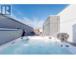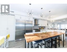Welcome to The Rise Townhomes at 39 Robinson Street, Unit 8. Luxury abounds in the details of this sophisticated, design-forward residence. Built in 2018, this 1664 sq.ft home offers elevated, low-maintenance living in a mature and established Grimsby neighbourhood. With over $50,000 in premium upgrades, and soaring 9ft ceilings throughout, this home is ideal for working professionals, remote executives, or those seeking a flexible live-work space. The main living level showcases designer light fixtures, and high-end custom blinds that enhance both style and functionality. The chef-inspired gourmet eat-in kitchen is perfect for entertaining with multiple dining spaces for guests. It features a 7' x 3' expandable centre island, double-drawer dishwasher, built-in pantry with roll-out shelving, premium appliances, valued at over $40,000, and quartz countertops. The open-concept living and additional dining area flow to a covered 42 sq.ft balcony, creating a bright and refined entertaining space. A well-appointed bedroom and full 4 piece bath complete this level. Upstairs, the private primary suite offers views of green space, an expansive wardrobe system and a sleek 3-piece ensuite bathroom with walk in shower with dual shower heads . A secondary lounge features a custom gas fireplace, wet bar with fridge, sink and microwave, and an additional private balcony for exceptional versatility as a media room, executive office, or easily converted third bedroom. A fully customized laundry room provides built-ins and utility sink. Follow upstairs to the impressive 636 sq.ft. entertainers dream rooftop terrace complete with hot tub, dining area, lounge area and breathtaking escarpment views of Beamer's point. Two owned parking spaces, including garage and surface parking, add rare convenience. Walking distance mere minutes to downtown Grimsby, schools, restaurants, amenities, and with quick QEW access, this home offers modern luxury tailored to today's professional lifestyle. (id:61594)