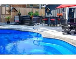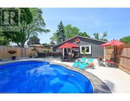 LAKESIDE LIVING! Just around the corner from the waterfront park. Beautifully updated throughout with open concept design. Set on large property with manicured grounds. Two large, paved driveways (2022), inground saltwater heated pool (new 2022), hot tub with resort style backyard Oasis! Chef’s kitchen (new 2021) with island & appliances. Main floor family room open to kitchen with large bay window & glass doors leading to very private outdoor dining area. Primary bedroom with walk-in closet. 4PC ensuite bath (new 2020). Bright & spacious lower-level rec room with oversized windows, wet bar, additional bedroom & full bath, laundry room with washer/dryer (new 2020). Inside entry to fabulous 2.5 car garage/man cave with wood stove & epoxy floor. OTHER FEATURES INCLUDE: 200 amp service, new roof shingles (fall 2024), new windows 2021, BBQ hut with natural gas hookup. Hot water tank owned (new 2020), garage door opener, central air, central vac. This home is ideally suited for in-law accommodation. Short stroll to waterfront trails, schools & conveniences, 5 minutes from wineries & easy access to QEW. Nothing to do but move in & enjoy your very own resort lifestyle - at home! (id:61594)