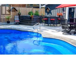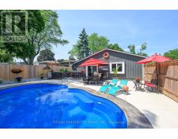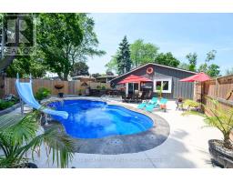 LAKESIDE LIVING! Just around the corner from the waterfront park. Beautifully updated throughout with open concept design. Set on large property with manicured grounds. Two large, paved driveways (2022), inground saltwater heated pool (new 2022), hot tub with resort style backyard Oasis! Chef's kitchen (new 2021) with island & appliances. Main floor family room open to kitchen with large bay window & glass doors leading to very private outdoor dining area. Primary bedroom with walk-in closet. 4PC ensuite bath (new 2020). Bright & spacious lower-level rec room with oversized windows, wet bar, additional bedroom & full bath, laundry room with washer/dryer (new 2020). Inside entry to fabulous 2.5 car garage/man cave with wood stove & epoxy floor. OTHER FEATURES INCLUDE: 200 amp service, new roof shingles (fall 2024), new windows 2021, BBQ hut with natural gas hookup. Hot water tank owned (new 2020), garage door opener, central air, central vac. This home is ideally suited for in-law accommodation. Short stroll to waterfront trails, schools & conveniences, 5 minutes from wineries & easy access to QEW. Nothing to do but move in & enjoy your very own resort lifestyle - at home! (id:61594)