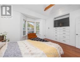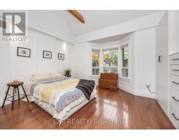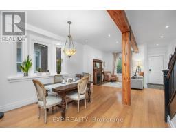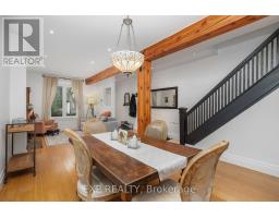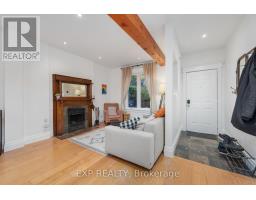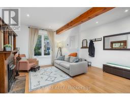 Welcome to this timeless red brick semi on one of Leslieville's most picturesque, tree-lined one-way streets.The home exudes character from the moment you step inside, with exposed wooden beams adding warmth and distinction to the spacious living and dining areas. A majestic fireplace anchors the living room, while high ceilings and pot lights create a bright, open ambience. The dining room bay window fills the space with natural light. Upstairs, the primary bedroom impresses with vaulted ceilings, exposed beams, a skylight and a large bay window overlooking the leafy street below. Two additional bedrooms offer flexibility for family and guests. A full bathroom serves the second floor, while a modern second full bath in the basement adds convenience and flexibility. The basement, accessible by a separate entrance, features sound insulation, excellent ceiling height, and professional waterproofing-perfect for a private suite, home office, or recreation space. Step outside to a private backyard deck ideal for outdoor dining and relaxation, with the added bonus of a very rare laneway parking spot. All this, just around the corner from Queen East's vibrant mix of cafés, restaurants, boutiques, and the TTC streetcar, making city living effortless and inspiring. (id:61594)