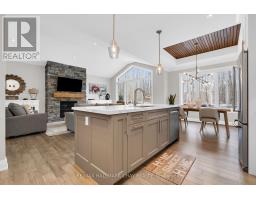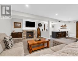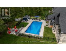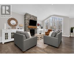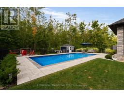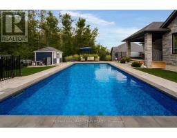 Ideally situated in the sought-after CAMERON ESTATES in Springwater, this impressive custom executive detached bungalow home offers over 2,100 sq.ft. on the main level, as well as an abundance of finished living space on the full lower level - bonus of bungalow style homes! CURB APPEAL and pride of ownership is evident from the moment you arrive. Stone walkway leads to the welcoming covered front porch. Stylish main entrance with window accents greets you in the spacious foyer. CUSTOM KITCHEN with stylish white cabinetry is a Chef's delight - open to the main floor principle rooms - encourages valued family time, conversation and is ideal for entertaining. Built-in appliances. Centre island with casual seating provides ample prep-space and storage below. Bright dining area with picture window (as well as sliding doors to covered back porch). LIVING ROOM features oversized floor-to-ceiling windows viewing the private backyard oasis and bathe this space in natural light. Custom stone work feature wall natural gas fireplace adds warmth on cool evenings. PRIMARY SUITE with large custom closet and privacy of stunning ensuite. Two additional bedrooms, main bath and convenience of 2-pc guest bath, mud room, main floor laundry and inside access to the triple car garage - complete this main level. Extend your living space to the FULL FINISHED LOWER LEVEL where you will find two additional bedrooms and another full bath - as well as - wet bar, gym/exercise room, home office and a spacious rec room with gas fireplace. Situated on a rare 118' wide, 1/2 acre ESTATE LOT backing onto mature trees, this property delivers privacy and space you don't often find. Professionally landscaped with stonework, established plantings of trees and perennial gardens. Step into your BACKYARD OASIS with a fantastic in-ground pool, pool house, hot tub, and a covered porch-complete with direct access from the primary bedroom. THREE CAR GARAGE with ample driveway parking for vehicles, RVs, etc. (id:61594)