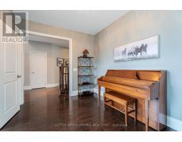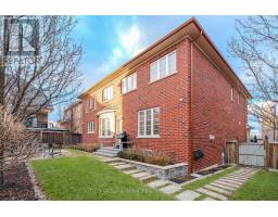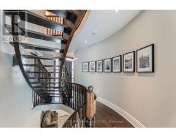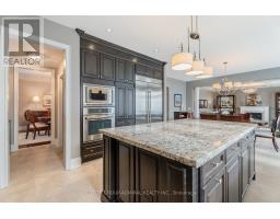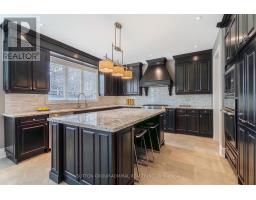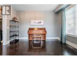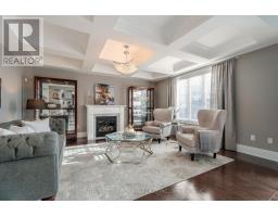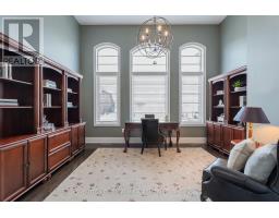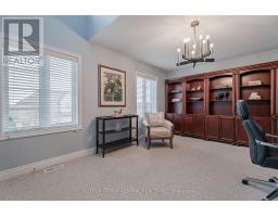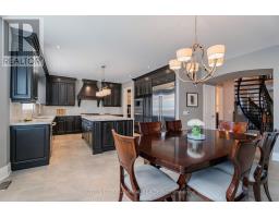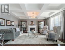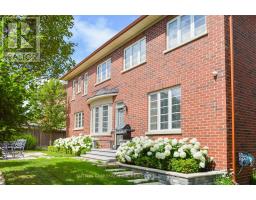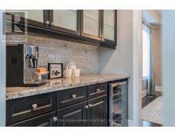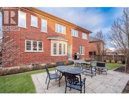 This executive home is a masterclass in elegance, offering over 4,000 sq. ft. of meticulously maintained living space. Situated on a premium lot on quiet street, the property is a nature lover's dream, bordered by conservation land and walking trails. The striking stone and brick exterior front, a long pavers-landscaped driveway (no sidewalk) for ample parking & a characteristic front porch with an outdoor chandelier creates a lasting first impression. A custom 8' arched door with sidelights welcomes you into a sophisticated floor plan. The main level offers a unique sunken library combined w/ a flexible living space- perfect for a piano room, home office or business waiting area. At the heart of the home is the upgraded Selba kitchen, boasting extended Maple cabinetry, a large centre island, granite counters, & Carrara marble backsplash. A convenient servery with bar fridge & a walk-in pantry connect the kitchen to a quaint formal dining room- the perfect setting for hosting intimate dinner parties. The open concept eating area of the kitchen features 18 x 18 Italian porcelain tiles and walks-out to a fully fenced yard with interlocked patio. Relax in the adjoining open concept design grand family room, highlighted by a tray ceiling & a cozy gas fireplace. For ultimate convenience, the main floor laundry provides direct access to the tandem garage. The upper level is designed for comfort, featuring a massive primary bedroom w/ 9' coffered ceilings, two large his/hers walk-in closets w/ organizers & a luxurious 5pc ensuite w/ a frameless shower. Three additional bedrooms each enjoy ensuite access & plenty of closet space, making this the quintessential home for a growing family. (id:61594)