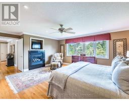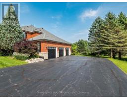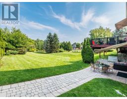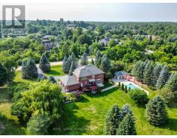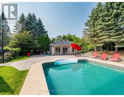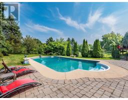 Welcome to 8 Deer Run an exceptional property in a sought-after executive estate subdivision. This private retreat sits on nearly 4 acres, including 1 acre of protected conservation. This beautifully maintained home offers approx. 3,100 sq ft above grade plus a walkout basement, combining timeless charm with modern upgrades. Perfect commuter location centrally located just minutes to Guelph, Milton, and Acton. The main floor features 9-ft ceilings, original hardwood, pot lights, crown moulding, a double-sided fireplace, and French doors opening to a coffered living room. The spacious eat-in kitchen includes granite countertops, travertine backsplash, built-in oven and cooktop, freezer, breakfast bar, walk-in pantry, and walkout to a 4-year-old deck with gas hookup and awning. A mudroom with laundry and deck access complements the 3-car garage. Upstairs offers 4 generous bedrooms, oak staircase with runner, pot lights, and original strip hardwood. The primary suite features double-door entry, fireplace, large walk-in closet, and 6-pc ensuite with Jacuzzi tub, walk-in shower, linen storage, and new toilet. Updated 4-pc main bathroom and additional linen closet complete the level. The finished walkout basement with separate entrance to the in-law suite offers 9-ft ceilings, pot lights, above-grade windows, a 3-sided fireplace, wet bar, cold room, and bedroom with stove connection and huge walk-in closet (or use as second bedroom) plus 3-pc ensuite and laminate flooring. The fenced-in 7-ft deep pool is thermal heated with a 2-year-old pump and filter. Enjoy a fully equipped pool house with running water and electricity, interlock walkway, perennial landscaping, sprinkler system, electric dog fence, surround sound, and outdoor fridge/freezer. Roof on house and pool house replaced 4 years ago with new gutters and guards. A true oasis with incredible privacy, just minutes to amenities (id:61594)