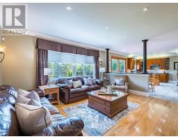 Welcome to 8 Deer Run an exceptional property in a sought-after executive estate subdivision. This private retreat sits on nearly 4 acres, including 1 acre of protected conservation. This beautifully maintained home offers approx. 3,100 sq ft above grade plus a walkout basement, combining timeless charm with modern upgrades. Perfect commuter location centrally located just minutes to Guelph, Milton, and Acton. The main floor features 9-ft ceilings, original hardwood, pot lights, crown moulding, a double-sided fireplace, and French doors opening to a coffered living room. The spacious eat-in kitchen includes granite countertops, travertine backsplash, built-in oven and cooktop, freezer, breakfast bar, walk-in pantry, and walkout to a 4-year-old deck with gas hookup and awning. A mudroom with laundry and deck access complements the 3-car garage. Upstairs offers 4 generous bedrooms, oak staircase with runner, pot lights, and original strip hardwood. The primary suite features double-door entry, fireplace, large walk-in closet, and 6-pc ensuite with Jacuzzi tub, walk-in shower, linen storage, and new toilet. Updated 4-pc main bathroom and additional linen closet complete the level. The finished walkout basement with separate entrance to the in-law suite offers 9-ft ceilings, pot lights, above-grade windows, a 3-sided fireplace, wet bar, cold room, and bedroom with stove connection and huge walk-in closet (or use as second bedroom) plus 3-pc ensuite and laminate flooring. The fenced-in 7-ft deep pool is thermal heated with a 2-year-old pump and filter. Enjoy a fully equipped pool house with running water and electricity, interlock walkway, perennial landscaping, sprinkler system, electric dog fence, surround sound, and outdoor fridge/freezer. Roof on house and pool house replaced 4 years ago with new gutters and guards. A true oasis with incredible privacy, just minutes to amenities (id:61594)