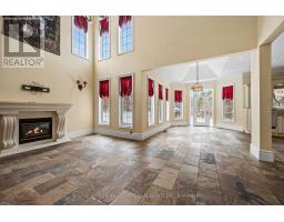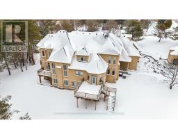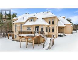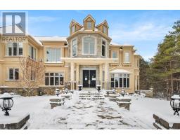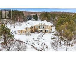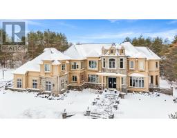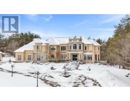 Welcome to this rare offering combining over 8500 sq ft of total living space, thoughtful design, and a prestigious setting in an exclusive enclave. Nestled on a quiet private cul-de-sac and surrounded by prestigious multi-million-dollar estates, this exceptional residence sits on a sprawling two-acre lot offering privacy, space, and refined living. A grand main floor welcomes you with soaring ceilings and elegant tile flooring throughout, creating a bright and open atmosphere ideal for both everyday living and entertaining. A thoughtfully tucked-away office with warm natural wood accents provides ample work-from-home space, while the bright formal dining room showcases crown moulding and timeless charm. Chef's kitchen featuring stone countertops, a stone centre island, and a breakfast area with walkout to the deck-perfect for seamless indoor-outdoor living. Multiple gas fireplaces add warmth and character throughout the home. The upper level features four spacious bedrooms, each with its own private ensuite. The expansive primary retreat offers a luxurious five-piece spa-like ensuite and plenty of room to relax. The above-grade lower level provides exceptional versatility with two additional bedrooms, a kitchen, comfortable sitting area, and flexible space ideal for a gym, recreation area, or playroom. Multiple walkouts lead directly to the expansive backyard, creating endless opportunities for outdoor enjoyment. Walk to Hanson's Chinese + Pizza, Whitchurch Conservation Area, and a quick drive to Highway 404, golf courses, Longo's, Farm Boy, Walmart, Pharmacies and more. (id:61594)