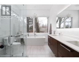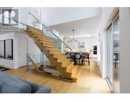 Welcome to 8 Greenford Road, a modern and luxurious custom build nestled on a small, quiet street just south of St Georges golf club in the exclusive enclave of Edenbridge-Humber Valley. Every detail in this beautiful home was thought over meticulously and the results are clear. The main floor features a very welcoming foyer that gives you a peak at the beautiful maple hardwood floors that flow throughout. Here you'll also find your office with a sleek built-in desk and floor to ceiling windows giving you a peak at nature while you work. The Living Room with gas fireplace, built-in storage and cove lighting sets the mood perfectly whether lounging or enjoying tv time with family. The open Kitchen with modern cabinetry, Thermadore appliances, and centre island overlooking the Dining area is great for cooking and entertaining. The space is complimented with high ceilings, skylights and walk-outs, brightening up the space with a south-facing backyard. The glass enclosed staircase leads you upstairs where you'll find a Primary Bedroom with incredible walk-in closet and gorgeous 5-Piece Ensuite. Three additional bedrooms make up the second floor. On the lowest level you'll find a great recreation room complete with murphy bed, walk-in closet, full storage room that can be closed off if desired, and a brand new 3-Piece modern Bath. The home also features technological enhancements including automated blinds on the main floor, Sonos music, strengthened security, Lutron lighting system, and more. Summer is around the corner where one can enjoy the backyard patio with mature trees and gasline barbecue, away from the hustle and bustle of main roads and highways. Being located in prime Edenbridge-Humber Valley you have direct access to top-rated schools, parks, restaurants, private golf courses, shopping, public transit (TTC, Subway, Go), and much more. Come see this beautiful home today! (id:61594)