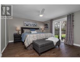5-BEDROOM BUNGALOW ON A 167 FT DEEP LOT BACKING ONTO ARDAGH BLUFFS WITH NOTABLE UPDATES, A FINISHED BASEMENT & DOUBLE GARAGE! Trade rear neighbours for Ardagh Bluffs views at this well-cared-for bungalow on a deep 48 x 167 ft lot. Arrive home to a classic red brick exterior framed by an interlock walkway, armour stone landscaping, and a double-car garage, then step out back to a fully fenced yard with a large deck, firepit area, and play structure. Key updates include the furnace, hot water tank, two sliding doors, bathroom floor, basement carpet and underpadding, armour stone and back deck. A skylit front entry opens to a main level with neutral finishes, engineered hardwood flooring, and California shutters in the open living and dining area. Heated porcelain tile floors make the kitchen feel good before the coffee is even poured, paired with white cabinetry, Caesarstone counters, stainless steel appliances, a subway tile backsplash, centre island, pantry cabinetry, and a walkout. Comfortable bedrooms include a primary bedroom with semi-ensuite access to the 4-piece main bathroom and its own walkout to the deck. Movie nights belong in the finished basement, where a rec room with a fireplace, built-in cabinetry, pot lights, and a barn board feature wall gives everyone a place to settle in, pass the snacks, and stay for one more episode, while 2 additional bedrooms, a 3-piece bathroom, and generous storage add flexibility. Walk to schools, Ardagh Bluffs, trails, parks, and The Peggy Hill Team Community Centre, with dining, entertainment, Highway 400 access, Walmart, Costco, Park Place Shopping Centre, and more, just a short drive away. (id:61594)