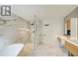 Lucky No. 8 on The Bridle Walk! ~2,918 sqft. Monarch-built home in family-friendly Berczy with great curb appeal: full brick facade, covered front porch & double garage. Sun-filled interior with 9 ceilings on main and hardwood on both 1st & 2nd levels. Renovated eat-in kitchen with a large breakfast area and walkout to the backyard - perfect for play and entertaining. Pot lights throughout; solid oak staircase. Upstairs features a bright open loft/home office with a wall of windows and a modern pendant. The designer's primary ensuite showcases large-format slab-look porcelain, a curbless walk-in rain shower with a niche, a freestanding tub, a floating double vanity and LED mirrors. The second updated bath offers a frameless glass shower, floating vanity and a modern bidet-style toilet. A second bedroom with its own ensuite (walk-in shower) plus two additional bedrooms complete the level. Separate side entrance to the basement for flexible future use (ideal for in-law/nanny/teen retreat; buyer to verify zoning/permits). Steps to parks & trails; minutes to Stonebridge P.S., Pierre Elliott Trudeau H.S., St. Augustine CHS, GO, shopping and Hwy 407/404. Move-in ready. (id:61594)