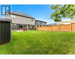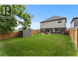 Desirable executive home on a private premium lot with no rear neighbours. This 4 bedroom 2 and a half bathroom Losani home features include carpet free main floor area, open concept main floor area, a large porch and a 4 car driveway to name a few of the highlights. Main level has a separate formal dining room at the front of the home, an office, a 2pc bath, kitchen with large island and walk in pantry and quartz counter top with backsplash, 9 ft ceilings a large great room with plenty of natural light and hardwood flooring throughout. Sliding patio doors lead you to your private rear yard over looking the treed forest behind you, a patio to sit and relax and a fully fenced yard with storage shed. The solid oak staircase leads you to the Second level which has 4 bedrooms with a spacious master having a walk in closet, 5 piece ensuite with glass door shower, soaker tub, double sink in the vanity, and a walk out to the balcony to enjoy your morning coffee. The Laundry room is also located on the second floor and 4 piece bathroom also. The lower level is partially finished with a large recreation room, a storage room, a utility room, a rough in for 3pc bathroom and also can finish another bedroom to bring the total to 5 bedrooms. Newly built park beside the home, mins from the 403 highway, downtown Paris and shopping and recreation center/skate rink within a minute walk. Must be seen to be appreciated! (id:61594)