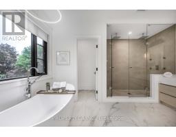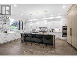 Welcome to 8 Manor Haven Road A Newer Custom Home Across from the Park!This beautifully designed 4+1 bedroom, 6-bathroom home offers over 3500 sqft luxurious living in a prime family-friendly location. Built by Embe Constructions and designed by Shaun Lipsey, it features premium finishes and a thoughtful, functional layout throughout. The main floor features 10ft ceilings, pre-engineered hardwood floors, pot lights, and floor-to-ceiling inline windows that flood the home with natural light. Spacious principal rooms include a formal living room and a large separate dining room, ideal for entertaining. The chefs kitchen by California Kitchens is a true showstopper, equipped with top-of-the-line JennAir appliances, including a side-by-side fridge and freezer, two wall ovens, and a massive 10-ft island with ample seating. A dedicated prep space with drink fridge, paired with a huge walk-in pantry offer exceptional storage and prep space. The kitchen is open to the rear of the home, while remaining separate from the dining and living rooms. The family room features a cozy fireplace framed by a stunning floor-to-ceiling granite feature wall, creating a dramatic and welcoming focal point.Upstairs, you'll find four spacious bedrooms and three full bathrooms, including a primary retreat with a walk-in closet by Closets by Design and a spa-like ensuite with heated floors.The finished basement offers 1570 sqft includes a fifth bedroom, full bathroom, and a large open-concept rec space ideal for a home office, gym, or guest suite. A built-in bar adds flexibility for entertaining. Additional highlights include a heated mudroom, built-in Sonos surround sound, gas BBQ hookup, and a large private backyard. Located directly across from a park, this home delivers top-tier quality, comfort, and modern family living (id:61594)
