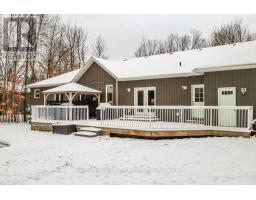 Welcome to this beautiful custom-built bungalow nestled in the sought-after community of Warminster, set on a 1.15-acre treed lot offering privacy, elegance, and resort-style living. This impressive 5 bedroom, 4 bathroom home showcases over $250,000 in upgrades and a thoughtful open-concept design featuring 9-foot ceilings and an abundance of natural light throughout. The entertainment-sized kitchen is a chef's dream with granite countertops, travertine tile, breakfast bar, and stainless steel appliances including a gas range, beverage refrigerator, and dishwasher. The inviting Primary Suite offers a luxurious ensuite and tranquil views, while the main floor laundry and 2-piece powder room add convenience and functionality. Hardwood floors flow seamlessly through the main living areas, enhancing the home's warmth and character. The finished lower level is designed for entertainment and relaxation, featuring two large bedrooms, a spa-inspired bathroom with walk-in shower, a home theatre, video gaming area, and a spacious family room with custom bar area - perfect for hosting friends and family. Step outside to your private oasis: a large entertainment-sized deck overlooks the landscaped yard and a stunning 16' x 32' heated inground pool (2023), creating the ultimate backyard retreat. The attached double tandem oversized garage provides ample space for vehicles, tools, and toys. This beautiful home is also wired for generator power for added security during power outages. Ideally located near parks, soccer fields, baseball diamonds, pickleball courts, and the new Xposed Ball Hockey League Courts, this home offers the perfect balance of luxury, recreation, and community living. Experience the best of country charm and modern sophistication in this exceptional Warminster bungalow - a true entertainer's dream! UPGRADES: Waterproofing of complete basement (2023), Washer & Dryer (2024), Humidifier (2023), Buried electric fence for pets, all deck boards (2024) (id:61594)