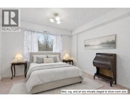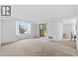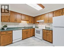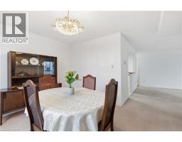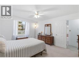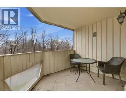 Welcome to 8 Village Green, Stoney Creek, located in Stoney Creek's historic and charming downtown King St area with quaint shops and restaurants. This well-maintained condominium apartment offers comfortable and spacious living (approx. 1200 square feet) in a desirable, well-managed community, popular with seniors and downsizers. Featuring 2 oversized bedrooms and 2 full bathrooms, a separate dining room for entertaining, and a bright and roomy living area with walkout to a private balcony large enough for a patio set: This home is ideal for relaxed every day living and great for someone who wants a space that's smaller and more manageable than their detached home with no snow to shovel and no lawn to cut! Great for snowbirds who want to simply lock the door and leave without worrying! Residents enjoy excellent building amenities including a workshop, library, exercise room, sauna, and party room with kitchen area. Convenient underground parking spot right near the elevator entry! Located near shopping, parks, transit, major highway access (Red Hill & QEW), Centennial Parkway, The Battlefield House and Park, Devil's Punchbowl and Waterfall, and the Bruce Trail. The suite overlooks the back of the building where there is serene greenspace and trees for privacy. Absolutely ideal for downsizers who still want space and a separate dining area, first time buyers who want a large condo, or anyone seeking low-maintenance, easy and enjoyable condo living! Lovingly cared for and maintained, the condo has been freshly painted and has new modern laminate flooring in the hallways (2026) Don't miss out on this desirable and affordable condominium! (id:61594)