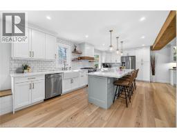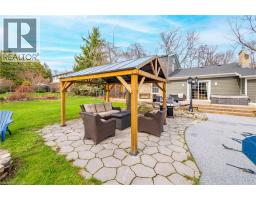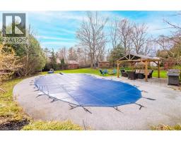 Welcome to Wildan Estates, a sought-after enclave known for its exceptional sense of community, where you get a true neighbourhood feel, unlike anywhere else. This fully updated home, set on a 0.5-acre lot, is ideally located just steps to parks and scenic trails. From the moment you arrive, the curb appeal is undeniable with Cape Cod natural wood siding, along with updated eaves, fascia, soffits, and exterior pot lights that enhance both style and function. Inside, the main floor has been completely renovated to offer a bright, open-concept layout ideal for everyday living and entertaining. The custom kitchen and dining space features stunning cabinetry by The Willow Woodshop, complemented by elegant HanStone Calacatta Gold quartz countertops, a sprawling 11’ island complimented by new high end appliances. Hardwood flooring flows seamlessly throughout the main level, accented by pot lights and a cozy gas fireplace overlooking your serene backyard. Upstairs, you’ll find 4 bedrooms and two beautifully renovated bathrooms! Extra updates include updated stair runners and a refreshed mudroom with an updated window and door. Step outside to your fully fenced private backyard retreat, complete with a spacious wood deck, a Rubbercrete pool surround, and a concrete pool that has been recently professionally repainted, creating a fresh and inviting space for summer enjoyment. The new cedar gazebo and hot tub offer the perfect place to unwind or entertain. This move-in ready home offers the perfect blend of modern upgrades, functional living space, and outdoor enjoyment, an exceptional opportunity for buyers seeking comfort, style, and a lifestyle close to nature. Conveniently located between Hamilton, Guelph, Cambridge, & Milton. There are two large sheds (15'x10') and (8'x12') and an estimated cost for a future garage has been explored; please reach out to the listing realtor for more information. (id:61594)