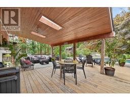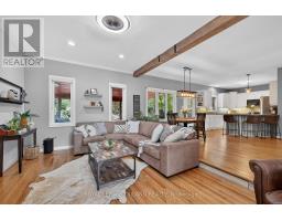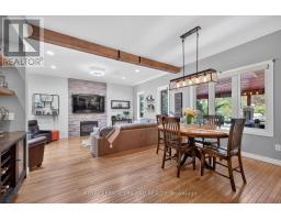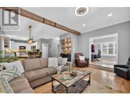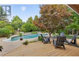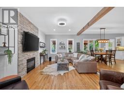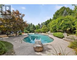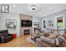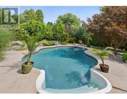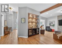 Welcome to your private "Muskoka-Like" backyard resort, where everyday living feels like a getaway. Situated on a spacious lot in Kilworth and surrounded by mature trees and landscaping, this 4-bedroom, 4-bathroom (2+2) home blends comfortable living with a relaxed, welcoming feel. The main floor features hardwood floors throughout, California shutters and custom blinds, a versatile front room perfect for a home office with a thoughtfully designed open concept kitchen with an eat-in area including built-in coffee or cocktail bar, and a seamless flow into the family room. The family room's striking stone wall with gas fireplace creates a warm and inviting focal point, while patio doors from the eat-in area lead directly to your own private backyard resort with a large covered deck great for outdoor dining and entertaining. Enjoy the best of outdoor living with a beautifully designed custom pool, heated by both solar and gas, and a relaxing hot tub located just steps from the deck - perfect for soaking up the sun or unwinding. Surrounded by lush greenery, this private and serene setting feels like Muskoka - without ever leaving Komoka - Kilworth. A secluded pergola area adds the perfect touch for meditation or quiet moments of reflection. The finished lower level offers even more space to relax and entertain, complete with a cozy movie area, wet bar, two-piece bathroom, and another beautiful stone feature wall with built-in shelving and electric fireplace. Car enthusiasts will love the heated garage, complete with a brand-new garage door. Located within walking distance of two parks featuring playgrounds and a splash pad, and just minutes from Komoka Provincial Park. Close to schools, shops, amenities, tennis courts, soccer fields, baseball diamonds, golf, and a community centre that includes a YMCA, skating rink, library, gym, and just a quick 7 - minute drive to London. (id:61594)