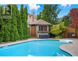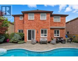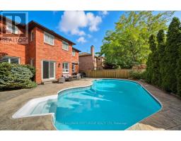 Welcome to this spacious 4-bedroom, 3-bath family home featuring a backyard retreat complete with an in ground pool, stone patio, and pool shed-perfect for entertaining or relaxing. Inside, the inviting two-story foyer leads to a living room with French doors, a dining room overlooking the pool, and a bright kitchen open to the breakfast area with a walk-out to the patio. The family room with fireplace creates a warm gathering space for everyday living.Upstairs, the primary suite offers a walk-in closet and 4-piece ensuite, while three generously sized secondary bedrooms each provide large windows and double closets. The finished basement extends the living space with a spacious recreation room and kitchenette with fridge-ideal for guests or extended family. (id:61594)