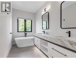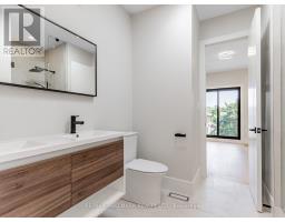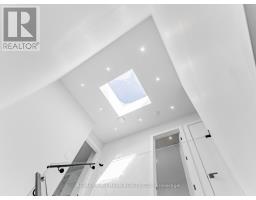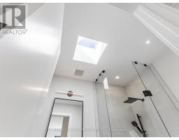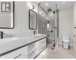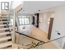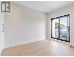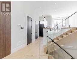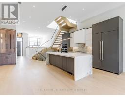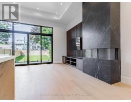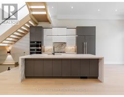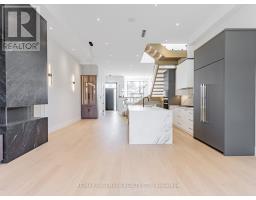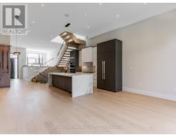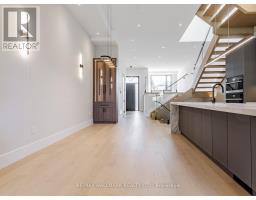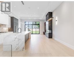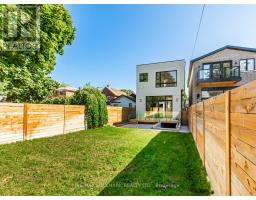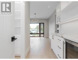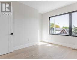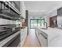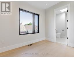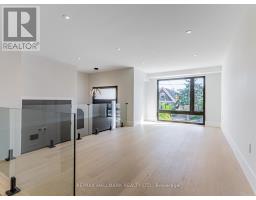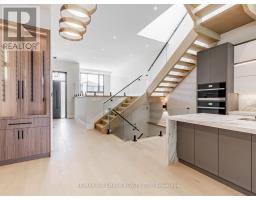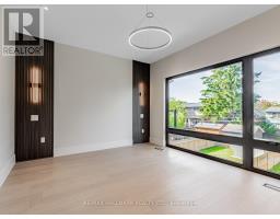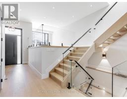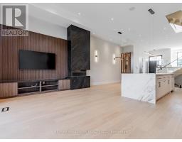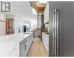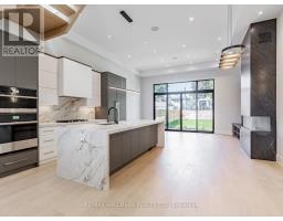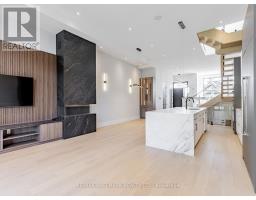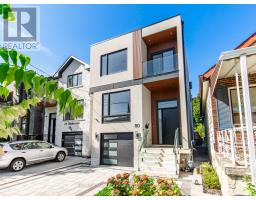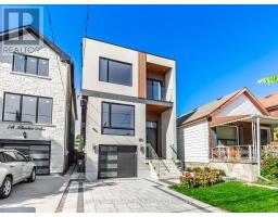 Welcome to this stunning custom-built home, showcasing 4+1 bedrooms, 4.5 bathrooms, a fully finished walk-out basement, and a built-in one-car garage with a private driveway that can accommodate two vehicles. Enjoy refined living spaces highlighted by sleek modern finishes and thoughtful design throughout. The open-concept main floor is filled with natural light and showcases 12.5 ft soaring ceilings, wide-plank hardwood floors, built-in speakers, and a striking floating staircase, a grand foyer with a large closet and powder room. A showpiece designer kitchen features a dramatic marble waterfall island, custom two-tone cabinetry, built-in panelled appliances, full-height marble backsplash, and modern lighting. The open-concept layout flows into a cozy yet sophisticated family room featuring a gas fireplace set against a wood-slat feature wall and a custom entertainment unit with ample storage. A massive 4-panel glass door leads to a fully fenced backyard with a new wooden deck, glass railings, paved patio, and lush green lawn. Upstairs, the skylit hallway leads to 4 bedrooms, including a luxurious primary suite with a walk-in closet & skylight, a spa-inspired 5-piece ensuite, and a private wet bar complete with a wine fridge perfect for late-night relaxation or morning coffee. A second bedroom features its own 3-piece ensuite with a walk-in closet, while two additional bedrooms, each with a closet, share a stylish 4-piece bathroom. One of the bedrooms offers a balcony. Laundry is conveniently located on the second floor. The finished basement includes a spacious rec room with a wet bar, an extra bedroom, a 3-piece bath, and a walk-out to the backyard, ideal for guests, a home office, nanny quarters, or in-laws. Located in a family-friendly East York neighbourhood close to top schools, parks, transit, and the vibrant Danforth. This home blends contemporary elegance with everyday comfort. (id:61594)