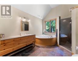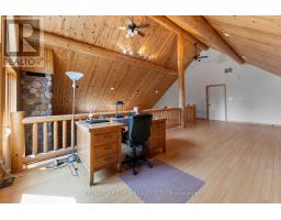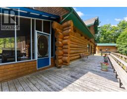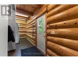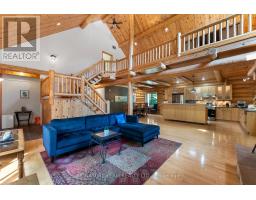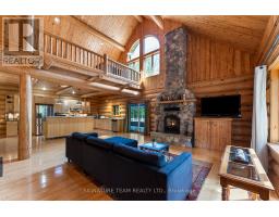 Set amidst 14.95 acres of mixed hardwood forest minutes from Pembroke, this extraordinary custom built log home offers a rare blend of artisanal craftsmanship and refined rural living. Designed with timeless attention to detail, this home is a true testament to natural beauty and enduring quality. The heart of the home is an expansive open-concept kitchen and dining area, thoughtfully laid out. Adjacent, the great room is anchored by a floor-to-ceiling stone fireplace and framed by dramatic 25-foot pine tongue-and-groove cathedral ceilings, creating a sense of warmth and scale rarely found. You'll find 2-beds, a 4-piece bath and screened in porch off the kitchen. Maple hardwood floors flow seamlessly throughout the main level, while handcrafted log railings and a custom staircase add authenticity and rustic elegance. The 2nd level opens to a spacious loft overlooking the great room below. Additionally, the large primary features 11-foot ceilings, bamboo flooring, a walk-in closet, and ensuite bathroom. Full basement is partially finished with its own entrance, a large rec room, a bedroom, 3-piece bath and a wood elevator. Outdoor living is equally impressive, with a large deck complete with built-in bench seating and a screened 3-season porch that invites you to relax. The detached 30 x 40 garage offers versatility, boasting 14-foot ceilings, 200 amp service, a 12 x 12 room with A/C, a bar area, insulated with radiant in-floor heat, and hot/cold water. In addition to the garage, there is also a gazebo area, lean-to, outbuilding for storage and a 3-season bunkie with a cookstove and kitchenette. Modern updates enhance the functionality and peace of mind, including a new LG stove & dishwasher, water treatment system, pressure tank, and roof was replaced in 2023. For those seeking a lifestyle in harmony with nature and elegance, this is a rare opportunity to experience the best of country living in a setting of charm, comfort, and craftsmanship. Min 24 hr irrevocable. (id:61594)