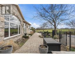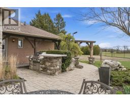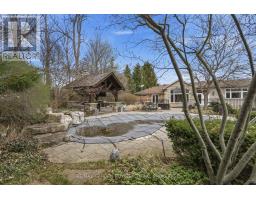 Fabulous Country Retreat - Ancaster Address, Brant County TaxesSome properties ask you to compromise. This one doesn't. Set on two beautifully landscaped acres, this sprawling brick ranch sits in quiet seclusion near Carluke Orchards, Fenwood Farms, and the local fairgrounds. Close enough to everything. Far enough from everyone. Ancaster address, Brant County taxes, and not a greenbelt restriction in sight. Pull up the drive and a cascading pond and waterfall set the tone before you even reach the front door. This is not a house that needs to try hard. The backyard is where the days disappear. Resort calibre inground pool with waterfall and deck jets, a post and beam cabana with outdoor kitchen, and a lit volleyball court that converts to a private rink come winter. Sonos speakers carry music inside and across the grounds. Landscape lighting turns everything golden after dark. Two acres of irrigated gardens and mature plantings frame it all, fed by a private well and cistern system that costs roughly $500 a year to run. Evenings here have a rhythm. Fire up the propane fireplace, pour something cold, and let the hot tub do the rest. Mornings feel different too, quiet, unhurried, with birdsong instead of traffic. Inside, everything works the way it should. Radiant in-floor heat, an efficient heat pump, Jenn-Air kitchen, LG steam laundry, poured concrete foundation. The detached insulated garage with a 30x35 heated workshop handles whatever passion project comes next. ADU permitted as of right. The farm behind is protected by easement. No developers ever. No need for a cottage when you live here. (id:61594)