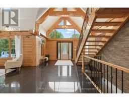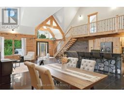 Welcome to the log home that redefines country living. Set on just over 8 acres of natural beauty, this 2-bed, 2-bath retreat combines rustic charm with modern comfort. Inside, soaring vaulted ceilings and sunlit living spaces create a sense of grandeur, while a pellet stove and forced-air furnace keep every season comfortable. The spacious primary suite with ensuite bath is your private escape, while the open-concept design makes everyday living easy and inviting.The property itself offers freedom at every turn: morning walks through the trees, skating on your own pond in winter, and summer evenings on the deck. A detached 2-car garage with a studio loft above adds versatility, while the greenhouse, barns, and sheds are ready for gardens, animals, or your next big project. Zoned RU (Rural), this property is perfectly suited for hobby farming. Get ready to enjoy enough acreage to comfortably keep small livestock, chickens, goats, or even a mix of animals, you will have the space and flexibility to live the country lifestyle you've always wanted. Highway 416 is minutes away and gives you the ability to enjoy peaceful seclusion with easy access to Ottawa, Kemptville, Prescott, and Brockville. The community of Spencerville offers a pharmacy, Drummonds Gas station & LCBO, the Village Pantry corner store, Spencercity Joes pub, a Legion, Agricultural Society, hockey arena, ball diamonds, and access to the beautiful trails of Limerick Forest. Prescott, Brockville, and Kemptville are all within easy reach. Hydro One averages $150 per month, peak summer or winter months ranging from $200 to $225. Heating costs are manageable, with propane averaging $1,500 per year and pellets for the stove approximately $2,000 annually. For connectivity, Bell through TrueSpeed is available at $63 per month with phone and cable services also provided by Bell. (id:61594)