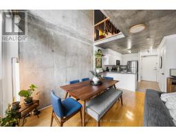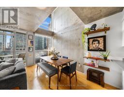 $709.25 MonthlyStep into this 2 storey, sun filled, inspiring Gallery style loft. You won't be disappointed - a true urban oasis with a refined, hard loft-like aesthetic. Spanning over 850 sq. ft of meticulously updated living space, this residence combines style, warmth, and functionality in equal measure. Drenched in natural light from dramatic double-height, south-facing windows, the home's open-concept main level offers soaring ceilings, a sleek modern kitchen, and a spacious living and dining area ideal for entertaining or relaxing. The extensive updates throughout elevate the space, blending industrial character with contemporary polish. Upstairs, you'll find two generous bedrooms, an upgraded bathroom with a refined urban touch, and a walk-in closet offering ample storage. Set within the iconic Electra Lofts, this boutique building sits at the nexus of Toronto's best dining, nightlife, and green spaces - steps from transit, the Bentway, and all that downtown has to offer. Whether hosting friends or enjoying a quiet evening on one of your two private balconies, this residence embodies King West living at its finest. Unit includes, parking, locker and several utilities within the maintenance fees. (id:61594)