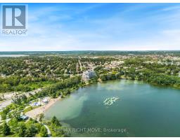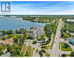 Rare opportunity to own an exceptional penthouse waterfront residence offering over 1600 sq ft of refined living space, panoramic elevated views, and beautiful year round sunrises, all while enjoying direct private access to Lake Couchiching. Thoughtfully designed for comfortable everyday living and effortless entertaining, this beautifully finished 3 bedroom plus den, 2 bathroom penthouse suite delivers the space and function many hope to find but rarely do. The sun filled kitchen is both elegant and practical, featuring custom floor to ceiling white cabinetry with abundant storage, glass display cabinets, quality appliances, and a farmhouse style sink. The open great room is warm and inviting, centred around a built in wall unit with a Napoleon electric fireplace and perfectly suited for hosting friends or relaxing at the end of the day. A versatile den provides an ideal home office or reading space. The spacious primary retreat and guest room each include custom closet organizing systems, while two private balconies offer peaceful outdoor areas to enjoy the water views and morning light from this elevated vantage point. This suite also includes the rare bonus of two underground parking spaces and two large lockers. Residents enjoy concierge service, a well equipped gym, indoor pool and hot tub, party and common entertaining rooms, guest suites for visitors, an indoor car washing facility, and a private beach on Lake Couchiching with a lakeside patio and BBQ area. A refined, low maintenance waterfront lifestyle without compromise, perfectly suited for those ready to enjoy more living and less upkeep. (id:61594)