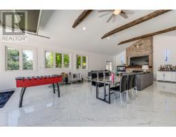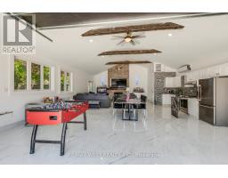 What makes this Mount Carmel home truly unforgettable isn't just the luxury renovation or its private backyard oasis its the rare bonus of a fully finished 1,033 sq. ft. detached building that delivers year-round comfort and high-end function. Complete with a full kitchen, 3-piece ensuite washroom, heating, air conditioning, and a floor-to-ceiling stone gas fireplace, this space is far more than a garage its a true extension of the home. Whether used as an entertainment lounge, home gym, guest suite, studio, or private showroom, its a standout feature that elevates the entire property. Set on a quiet, tree-lined street in one of Niagara Falls most coveted communities, this residence offers the best of Mount Carmel a neighbourhood known for its mature lots, top-rated schools, community pride, and quick access to parks, shopping, and the QEW. The main home is a showpiece from top to bottom. A sleek, modern kitchen takes centre stage with high-gloss cabinetry, quartz counters and backsplash, built-in Frigidaire Professional appliances, and a spacious breakfast island designed for both everyday living and entertaining. Upstairs, the primary suite feels like a retreat, with a walk-in closet and a beautifully finished 6-piece ensuite featuring dual vanities and a walk-in shower with double rainfall heads. Three additional bedrooms offer comfort and flexibility for family or guests. The finished walkout basement expands your living space with a second full kitchen, private entrance, and a stylish bath with ceiling-installed red light therapy ideal for multi-generational living or added privacy. Outside, the gated and professionally landscaped backyard was made for hosting and unwinding: a hot tub, covered dining area with fan, multiple lounge zones, and mature trees create a resort-like experience. The extended driveway accommodates up to 12 vehicles, with total parking for 18 when including both garages. Don't miss out on this rare opportunity (id:61594)