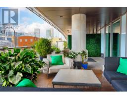 Step into your urban sanctuary at 1 Market Street, in Toronto's coveted St. Lawrence Market neighbourhood. This exceptional8th-oor combined residence spans 1,084 sq ft of artfully designed living in a U-shaped layout, flowing effortlessly into an 865 sq ft wraparound terrace with breathtaking west and south-facing skyline views. Inside, large-format porcelain floors create a sleek, contemporary canvas. The chef's kitchen boasts an 11.5 island, 30 NG range with double oven, double sink, and abundant storage. Perfect for culinary mastery. A sunlit dining area with Jotul NG replace leads to a chic seating space, while the office alcove connects to the master suite. The suite features a custom walk-in closet and spa-like 5-piece ensuite with soaker tub. The second wing offers a versatile room for a media viewing or as a guest bedroom, complemented by a separate 3-piece bathroom and entry closet. Four sliding doors invite you onto the wrap around terrace, designed for entertaining or quiet reflection, with two water features, irrigated raised planters, 2 water taps, 2 NG connections, and a private storage nook. This residence includes a secure indoor parking spot with a two-bike rack, an extra-large 8 by 10 ft locker. Market Wharf residents enjoy 24-hour security, concierge service, an award-winning gym, steam room, party room, theatre, yoga studio, guest suites. Beyond your door, immerse yourself in Toronto's nest: the historic St. Lawrence Market, boutique shops, acclaimed restaurants, Distillery District, Sugar Beach, waterfront trails, and world-class entertainment at Scotiabank Arena and Rogers Centre. With seamless transit via Union Station and the PATH network, the Financial and Entertainment Districts are always within easy reach. (id:61594)