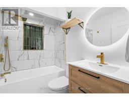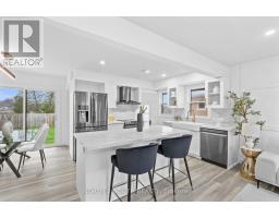 From the street it looks like every other bungalow. Then you walk in. FULLY RENOVATED - new electrical, plumbing, A/C, water heater, doors, patio door, kitchen, appliances, flooring, soffits, fascia and fencing. Nothing left untouched. DESIGNER KITCHEN with quartz island, gold farmhouse sink and marble backsplash. SPA-INSPIRED BATHROOM with full marble tile, gold rainfall shower and backlit LED mirror. FINISHED BASEMENT with SEPARATE ENTRANCE - two additional rooms and large rec area. Serious income potential. BACKS DIRECTLY ONTO WILSON PARK - splash pad, baseball diamond, walking trails, basketball courts. Peaceful street. Easy highway access. COMPLETE TURNKEY. Look no further. Stunning fully renovated detached bungalow backing directly onto Wilson Park. Recently completed renovation - new electrical, plumbing, drainage, A/C, water heater, water softener, doors, patio door, kitchen, appliances, flooring, paint, soffits, fascia, pot lights, patio and fencing. Finished basement with separate entrance, two additional rooms and large rec area - excellent income potential. (id:61594)