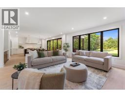 Experience the pinnacle of modern living at 81 Doans Ridge Road - an interior design gem offering 3,025 sq ft of refined space on a 60' x 200' lot. From the moment you step inside, the open-concept main floor sets the tone with soaring 9' ceilings, rich engineered hardwood, custom white oak wall paneling, in-ceiling speakers, and sun-filled windows. The chef's kitchen is a show stopper with a 48 Thermador gas range, 36 Thermador fridge, 8' island, and walk-in pantry-perfect for hosting. A main-floor office provides the ideal work from home setup. Step onto the 295 sq ft covered deck and soak in tranquil views. Upstairs, two bedrooms each offer private 3 piece ensuites and walk-in closets, while the 650 sq ft primary suite is a true retreat with vaulted ceilings, a fireplace, spa inspired ensuite, and walk-in closet. The basement features over 8' ceilings, a roughed in bath, and a garage to basement stairwell. Located minutes from the Welland canal, trails and major highways, this home delivers luxury, lifestyle, and location in one extraordinary package. (id:61594)