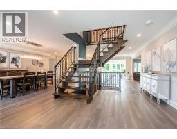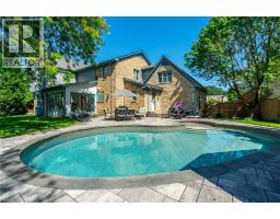 Welcome to this exceptional four-bedroom, four-bathroom residence offering over 4,700 square feet of beautifully finished living space. The bright and open main floor makes an immediate impression with a striking iron-and-glass staircase and an elegant dining room designed to host memorable gatherings. The custom chef’s kitchen is the heart of the home, featuring a large island with breakfast bar seating, KitchenAid appliances, quartz countertops, and a timeless marble backsplash. The sun-filled sunroom overlooks the backyard and pool—an ideal spot to enjoy your morning coffee. A cozy family room with a gas fireplace and sliding barn doors leads to a bright home office and additional living space. Completing the main level are a stylish powder room and a functional mudroom with inside access to the double-car garage. Upstairs, the stunning primary suite is a true retreat, offering a sitting area, a show-stopping dressing room with custom built-ins, and a luxurious five-piece ensuite with a freestanding soaker tub and glass rain shower. Three additional generously sized bedrooms, a five-piece main bathroom, and a convenient bedroom-level laundry room provide comfort and space for the entire family. The finished basement is designed for entertaining, featuring a large open area ideal for a media room and kids’ zone, plus additional space for a home gym, a separate games room, and a three-piece bathroom. Step outside to your private backyard oasis, complete with a stone patio, pool, gazebo for outdoor movies or game nights, and a firepit—perfect for relaxing evenings in a peaceful, secluded setting. Located on one of Waterdown’s most prestigious streets, this home is just minutes from downtown shops, restaurants, schools, parks, waterfalls, and the Bruce Trail. With easy access to Aldershot GO, QEW/403, and Dundas Street, this remarkable property offers an exceptional blend of luxury, lifestyle, and convenience. Don’t be TOO LATE*! *REG TM. RSA. (id:61594)