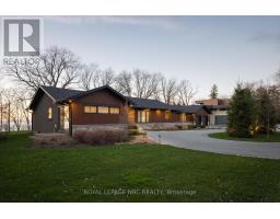 WELCOME TO YOUR BEAUTIFUL CUSTOM LAKEFRONT DREAM HOME IN NIAGARA! Stunning waterfront residence on a rare 1 acre private lot with 140 ft. shoreline frontage, on exclusive Simpson Road, offering breathtaking views from every room of Lake Ontario and the Toronto skyline. Enjoy dramatic sunsets, direct water access in this 2300 sq. ft. custom bungalow, fully renovated from top to bottom. Floor to ceiling windows in the Great room frame the view, anchored by 14 foot vaulted ceiling, a dramatic full-height stone fireplace, rich hardwood throughout. Gourmet kitchen with s/s appliances, perfect for entertaining. 3 spacious bedrooms on the main floor, each with wall to wall custom built in cupboards, and walkouts to patio including Primary bedroom with ensuite. Main floor laundry, interior access to double garage with rear overhead door. Generac generator. Lower level with 2 bedrooms (one currently in use as a home office), full bathroom, cantina and a huge unfinished room, perfect to create a fabulous Recreation room. Professionally landscaped with irrigation system, circular drive. Enjoy your own piece of waterfront paradise! See video for full views and tour. (id:61594)