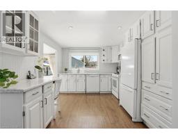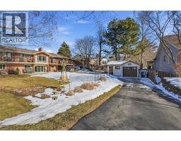 Incredible and rare opportunity to call this bungalow home—complete with an above-grade in-law suite—situated on an oversized lot in the mature south end of Waterdown. Step inside the main level and be greeted by a bright, airy living room highlighted by cathedral ceilings, a cozy gas fireplace and expansive sun-soaked windows. The updated kitchen impresses with navy shaker cabinetry, stainless steel appliances, quartz countertops, an abundance of drawers and thoughtfully designed built-in storage. A bonus office/den is conveniently located just off the kitchen. Down the hall are three tastefully updated bedrooms, two of which feature balconies—ideal for enjoying your morning coffee. An updated full bathroom with a dual vanity completes this level. The lower level offers a fully self-contained in-law suite with its own entrance, featuring two bedrooms, a full bathroom, a bright white kitchen, a spacious family room with a gas fireplace, a den/office and a dedicated laundry room. Floor-to-ceiling sliding doors and large windows flood the space with natural light, creating an exceptionally comfortable living environment. Outside, the impressive lot provides endless possibilities. Enjoy a detached single garage/shop, a second single garage, two driveways for ultimate convenience and an expansive yard where the kids can run, play and make lifelong memories. Homes like this are truly rare—just the second owner in over 61 years. This is the one. Don’t be TOO LATE*! *REG TM. RSA. (id:61594)
